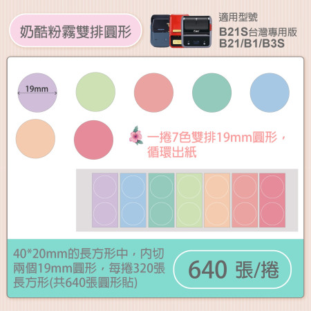 圓形貼+紅字醒目-奶酷粉霧 19mm雙排