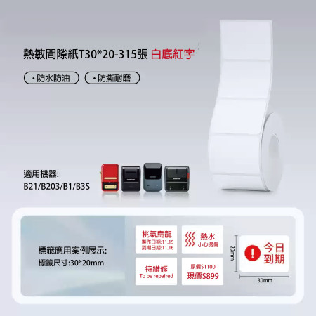 圓形貼+紅字醒目-白底紅字 30*20mm