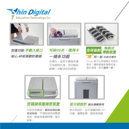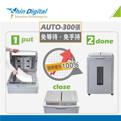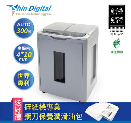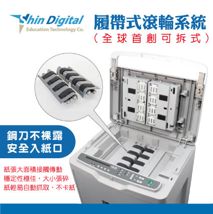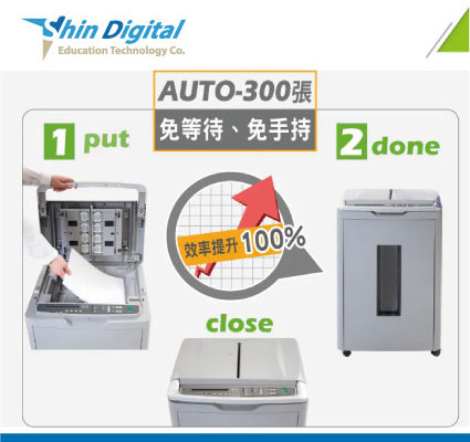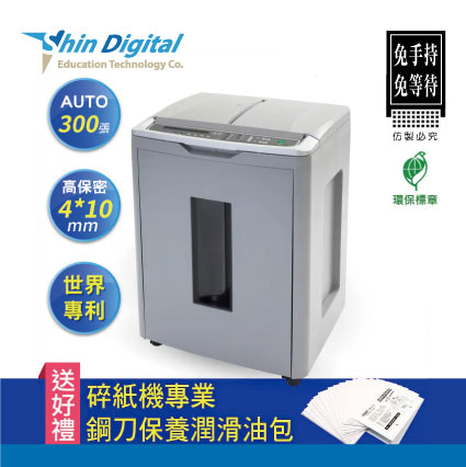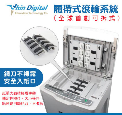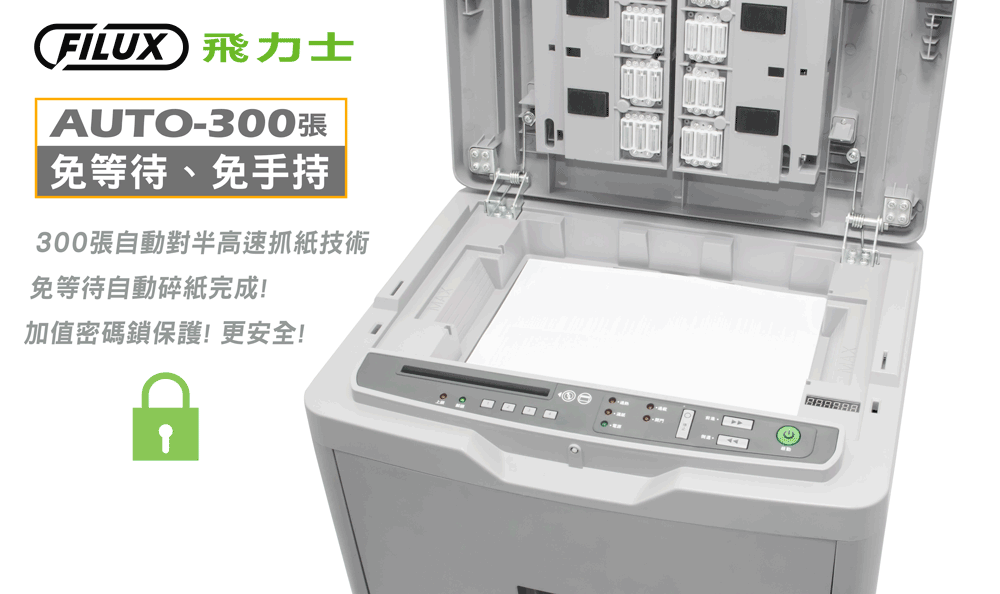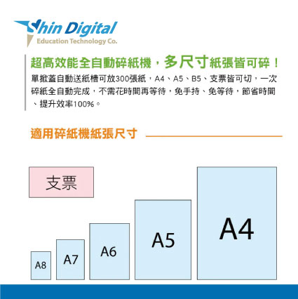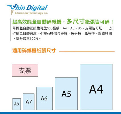 ◆ 單掀蓋自動送紙槽可放300-320張紙,全方位A4紙以下,多尺寸(A4、A5、B5支票)皆可切,一次碎紙全自動完成