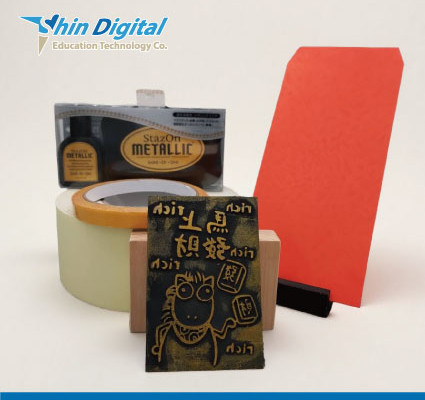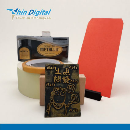 內含 : 木質印章底座x30、雕刻用橡膠墊x50、金色油性印台(含補充液x 1) x1