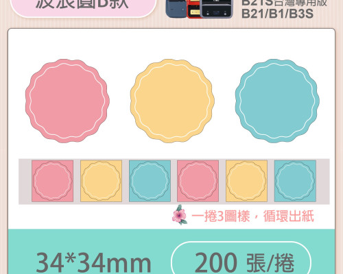 圓形貼+紅字醒目 : 波浪圓B款 34mm