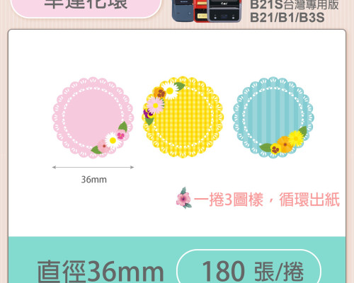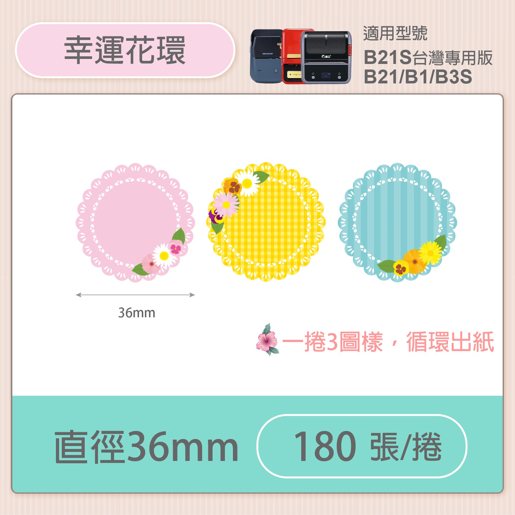 圓形貼+紅字醒目 : 幸運花環 36mm