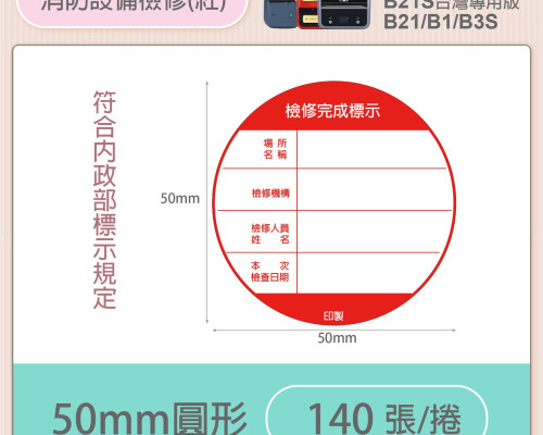 圓形貼+紅字醒目-消防設備檢修-紅 50mm 數量