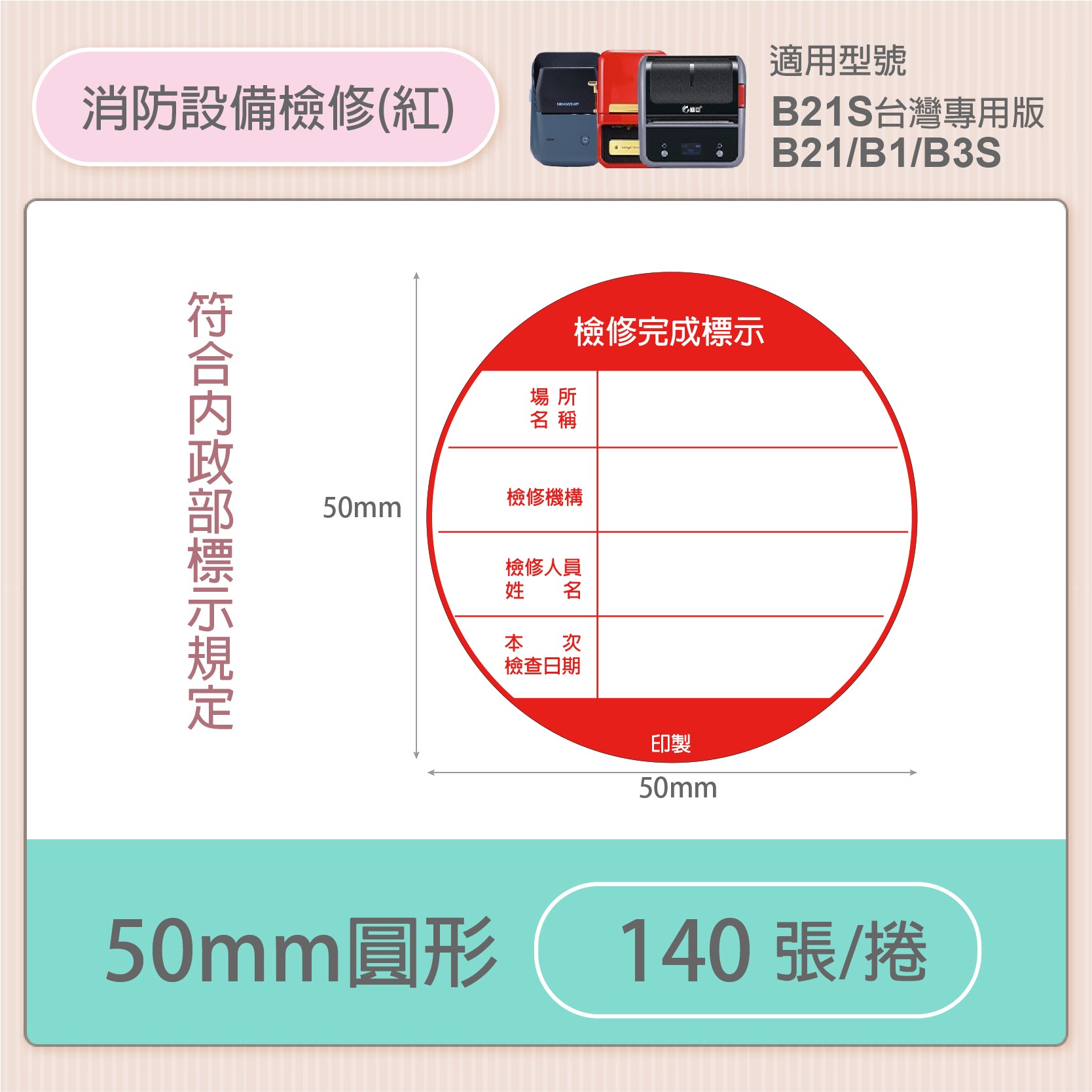 圓形貼+紅字醒目-消防設備檢修-紅 50mm