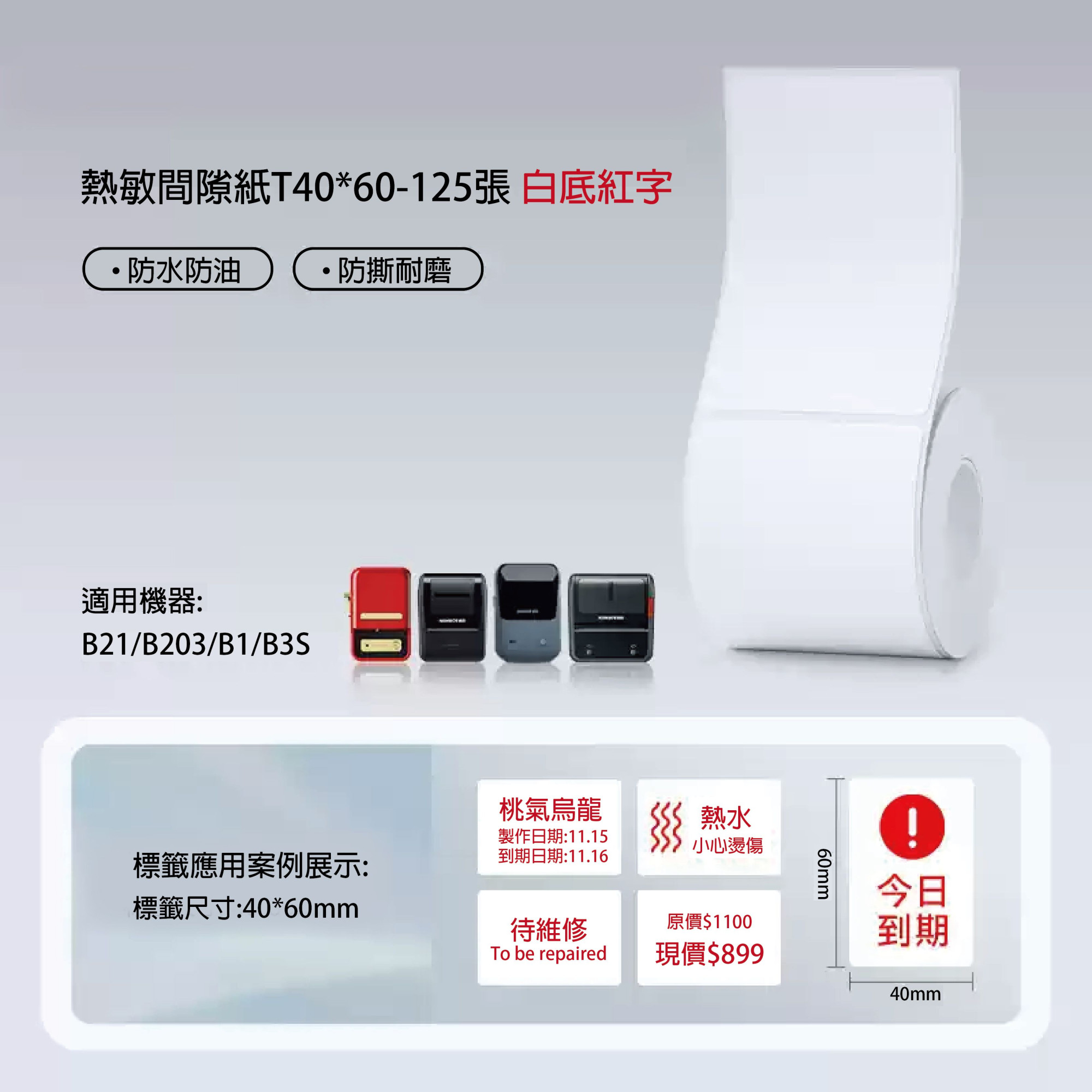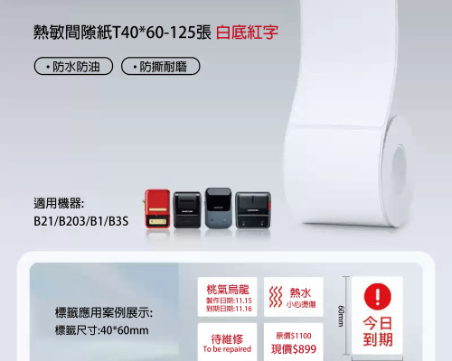 圓形貼+紅字醒目 : 白底紅字 40*60mm