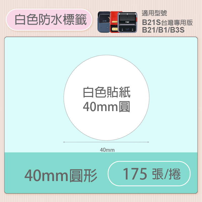 圓形貼+紅字醒目 : 白色防水標籤 40mm圓形