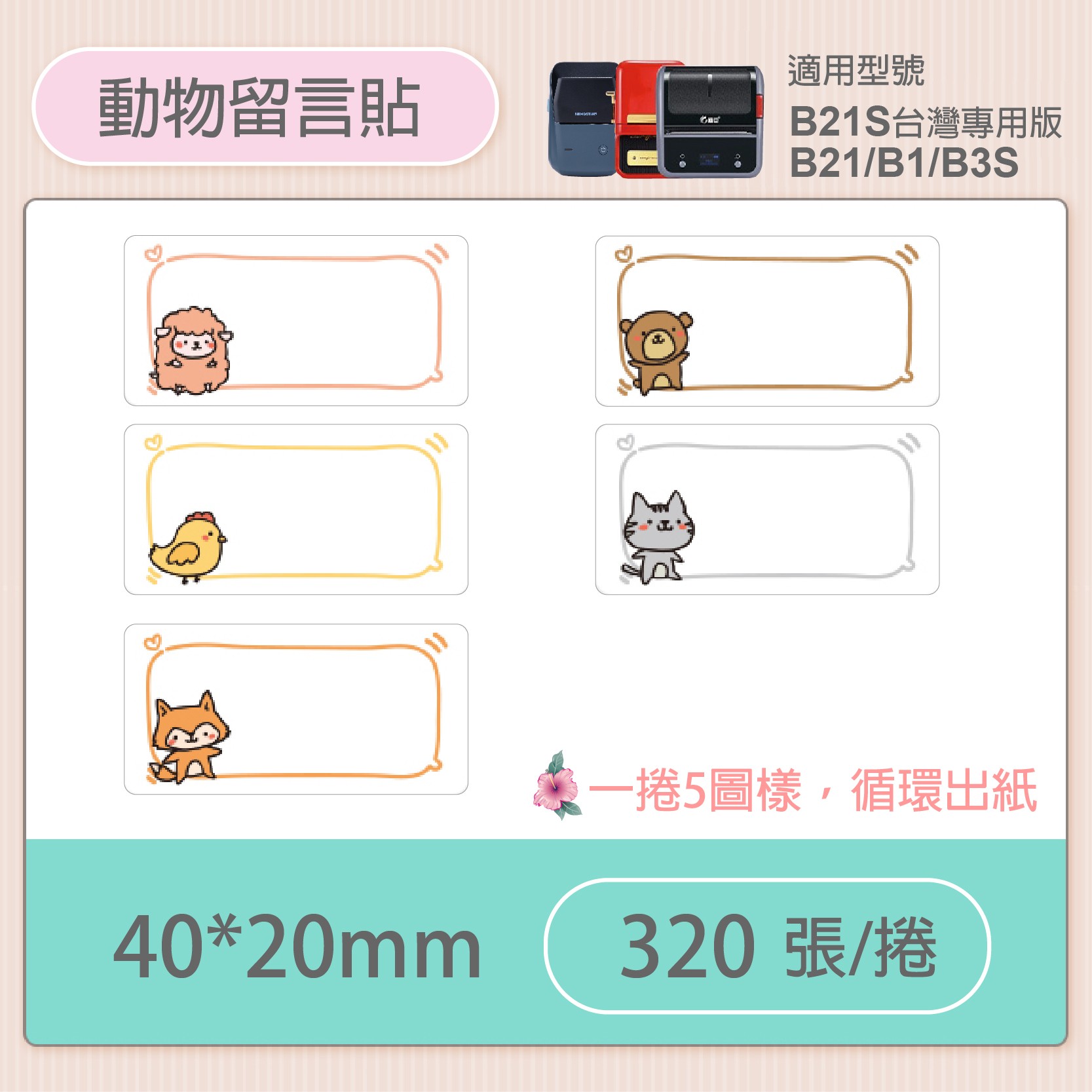 動物留言貼40x20mm