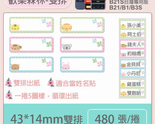 雙排出紙,適合當姓名貼,一捲5圖樣,循環出紙。