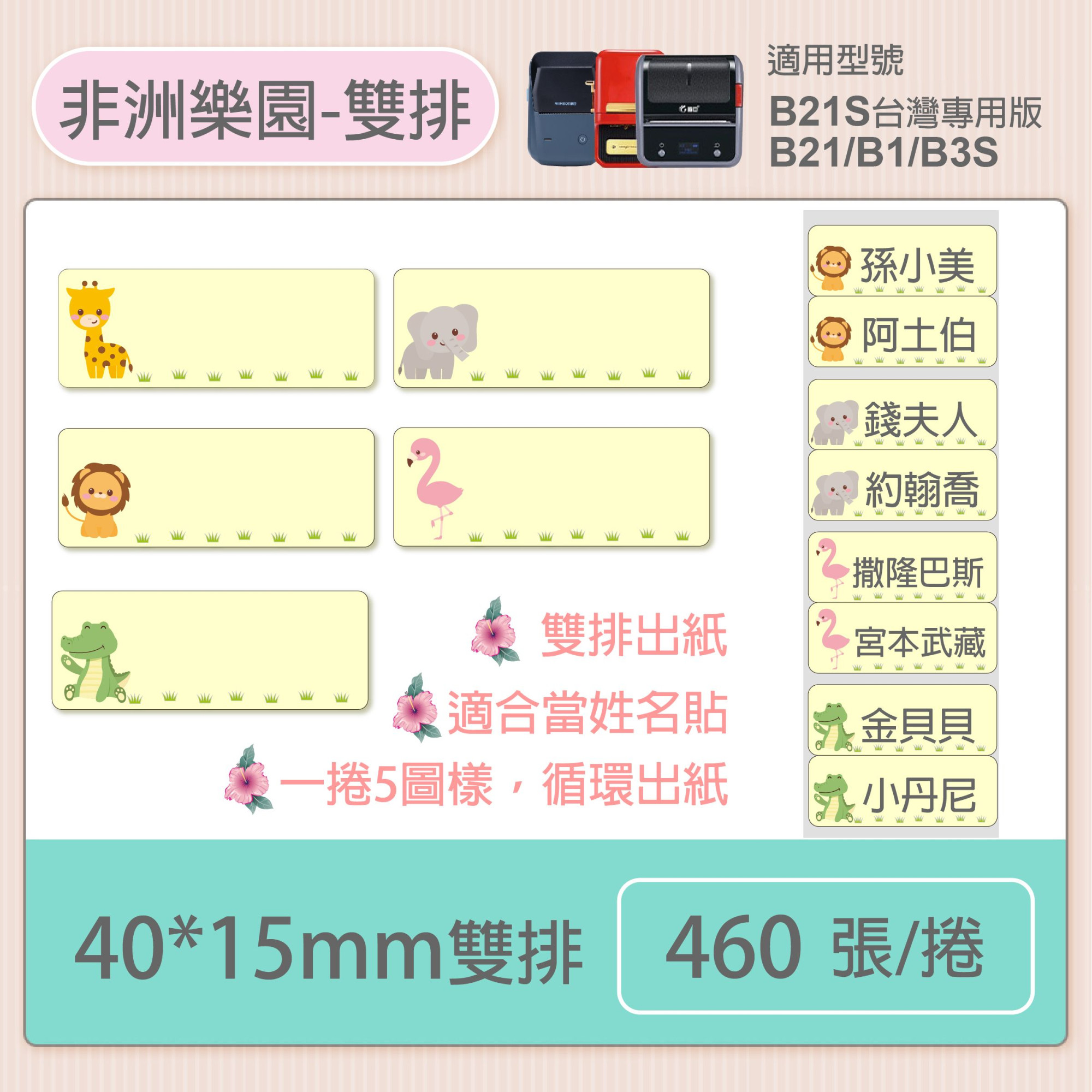 雙排出紙,適合當姓名貼,一捲5圖樣,循環出紙。