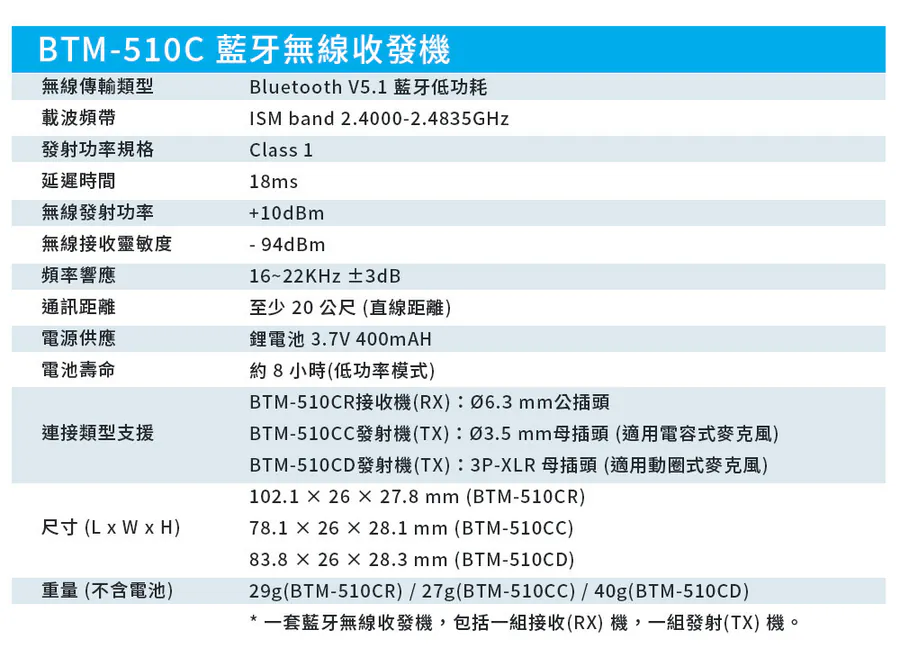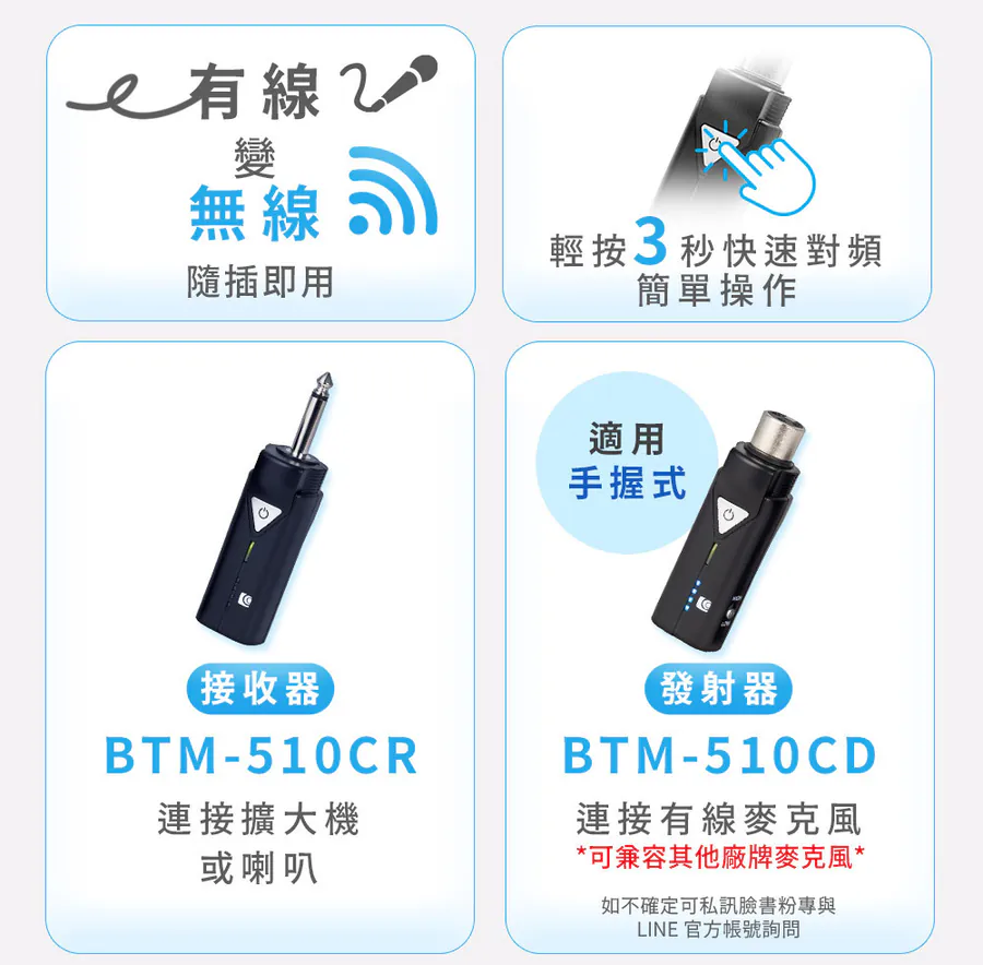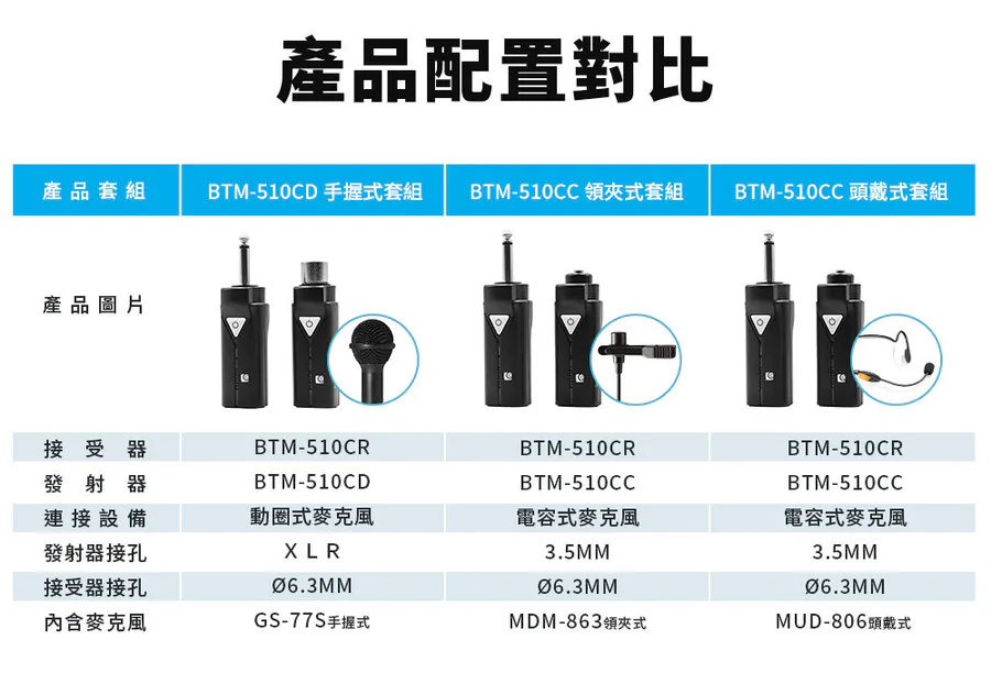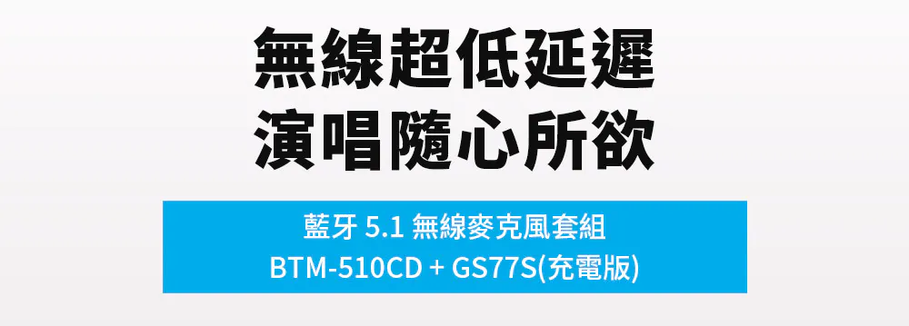 無線藍牙 5.1 系列|麥克風套組 BTM-510CD (充電版) + 手握式麥克風 GS77S 教學演講清晰音質