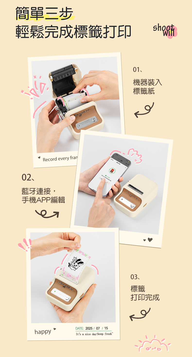 - 適用紙張:寬幅20mm ~50mm 標籤紙(建議使用原廠耗材)