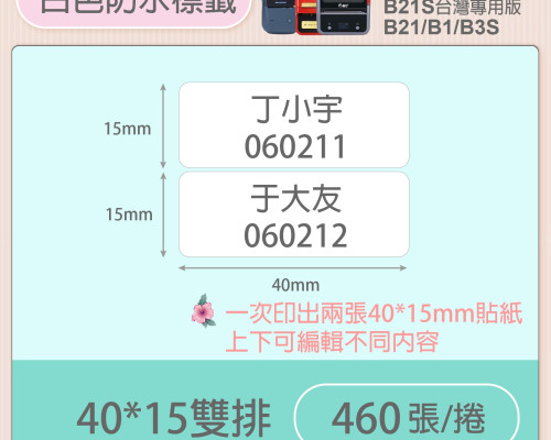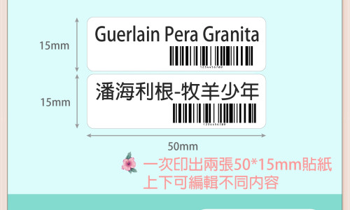 一次印出兩張40*15mm貼紙,上下可編輯不同內容。