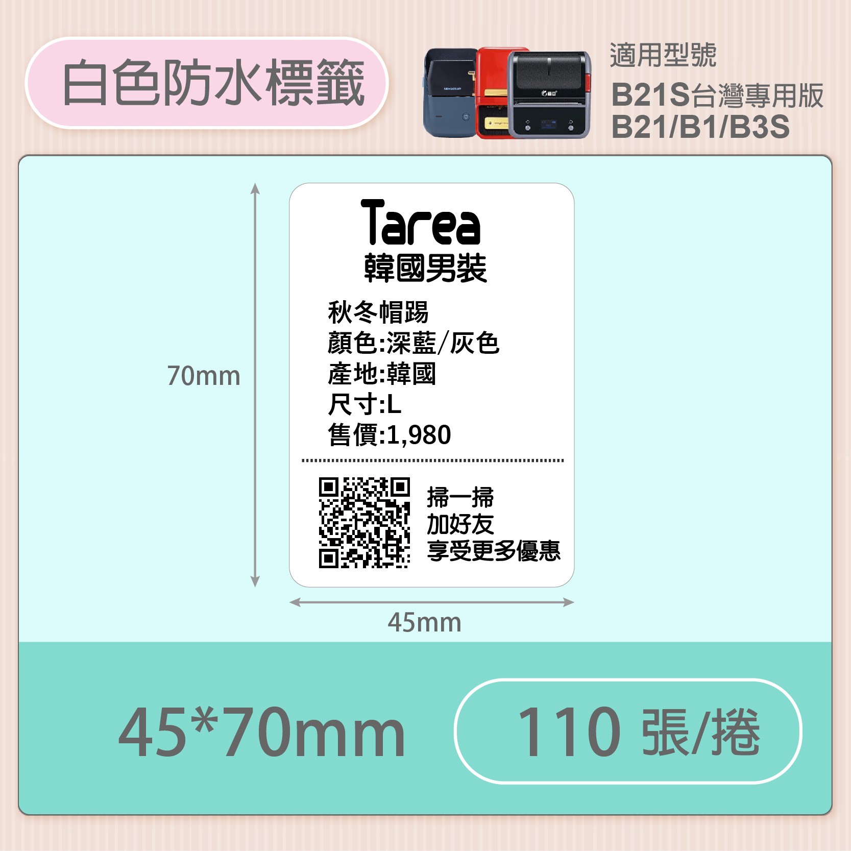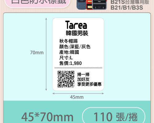 B系列純白貼紙 45*70mm
