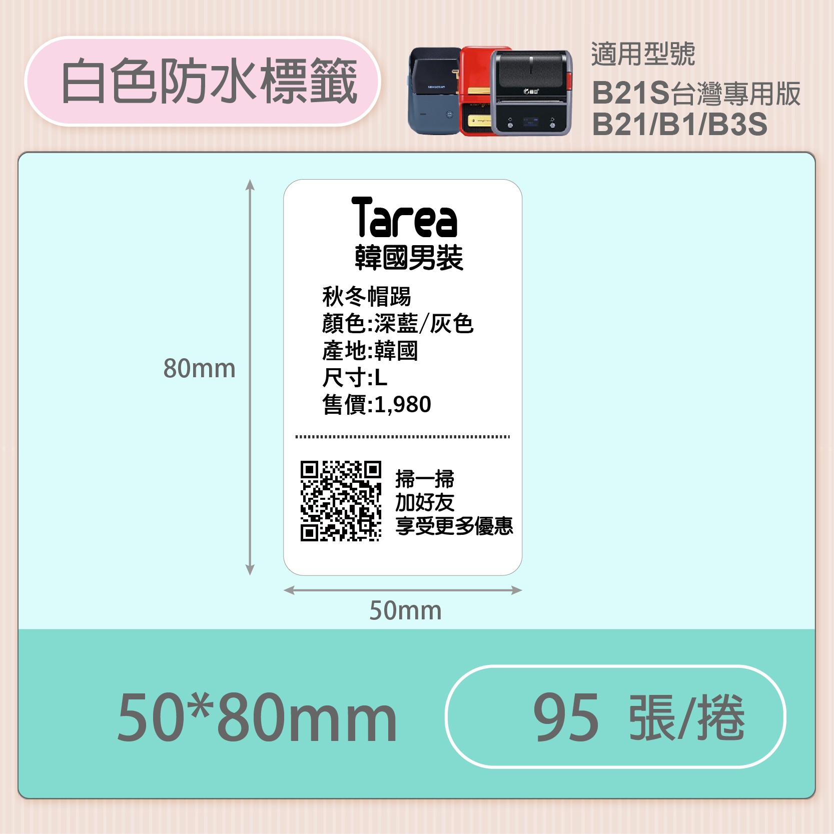 B系列純白貼紙 50*80mm