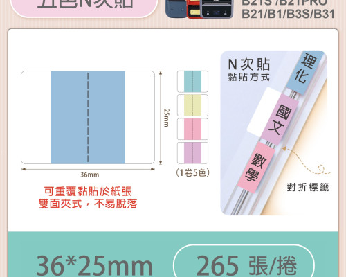 索引貼-索引N次貼-五色 36x25mm