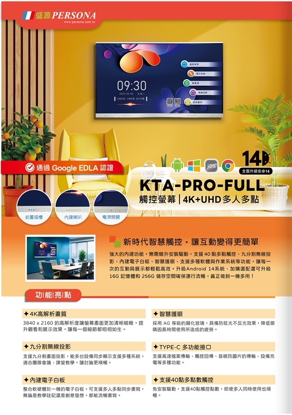 以上功能都是大尺寸KTA-PRO觸控螢幕安卓11版本內建功能。