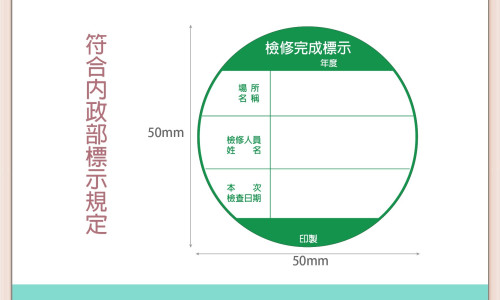圓形貼+紅字醒目-消防設備檢修-綠 50mm