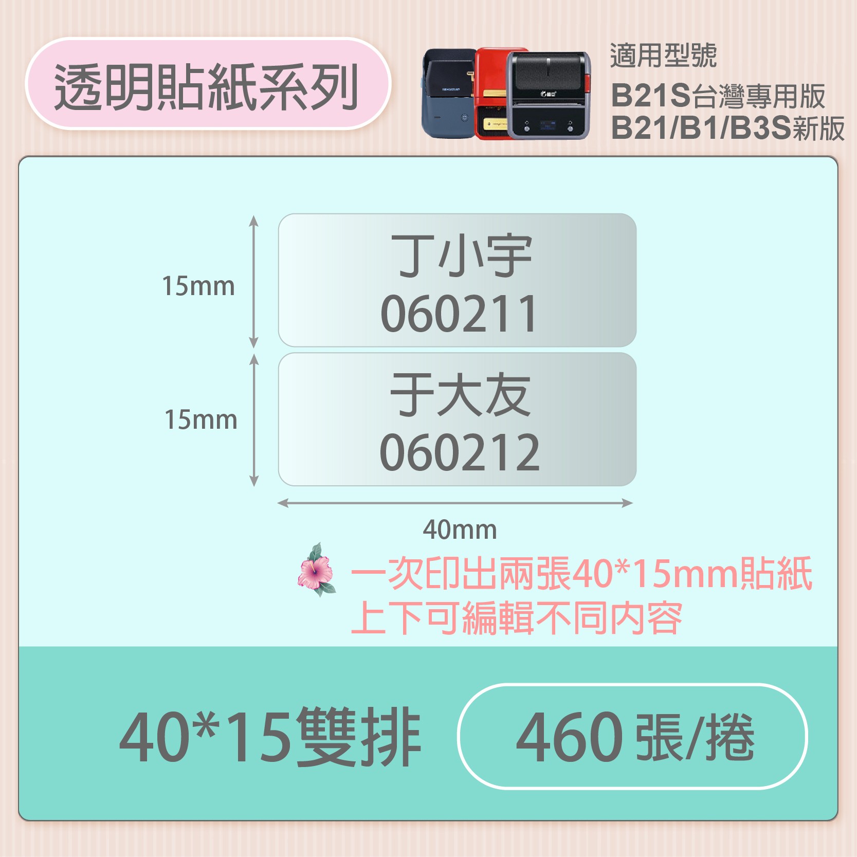 透明 : 透明 40*15mm雙排