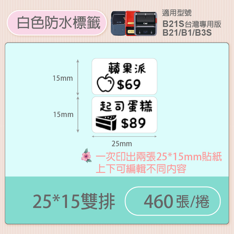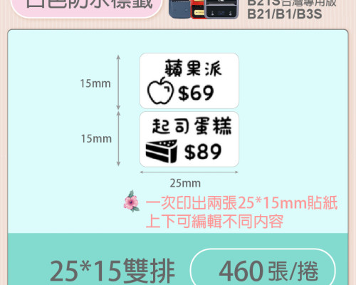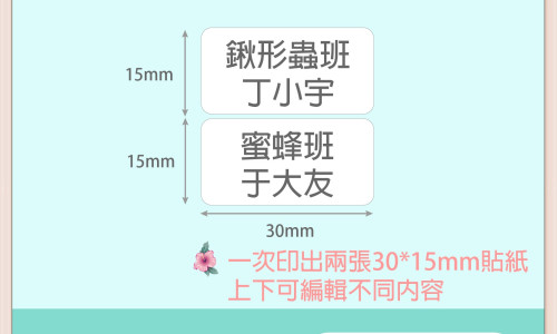 一次印出兩張25*15mm貼紙,上下可編輯不同內容。